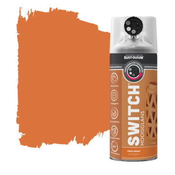 Met de Rust-Oleum Switch spuitlak hoogglans citrus oranje 400 ml werk je zoals jij dat wilt. De spuitmond heeft vijf standen waarmee je zelf bepaalt hoe de lak uit de bus komt. Kies uit hoog volume, standaard, laag volume, of een horizontale of verticale straal. Zo pas je de spuitvorm aan op wat je schildert, van grote oppervlakken tot kleine hoekjes. Door één simpele draai wissel je van stand. Dat scheelt tijd én voorkomt fouten tijdens het lakken.