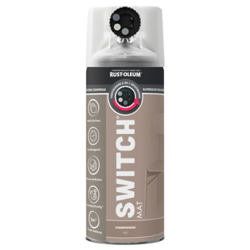 Met de Rust-Oleum Switch spuitlak mat champignon 400 ml werk je zoals jij dat wilt. De spuitmond heeft vijf standen waarmee je zelf bepaalt hoe de lak uit de bus komt. Kies uit hoog volume, standaard, laag volume, of een horizontale of verticale straal. Zo pas je de spuitvorm aan op wat je schildert, van grote oppervlakken tot kleine hoekjes. Door één simpele draai wissel je van stand. Dat scheelt tijd én voorkomt fouten tijdens het lakken.