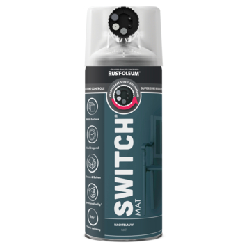 Met de Rust-Oleum Switch spuitlak mat nachtblauw 400 ml werk je zoals jij dat wilt. De spuitmond heeft vijf standen waarmee je zelf bepaalt hoe de lak uit de bus komt. Kies uit hoog volume, standaard, laag volume, of een horizontale of verticale straal. Zo pas je de spuitvorm aan op wat je schildert, van grote oppervlakken tot kleine hoekjes. Door één simpele draai wissel je van stand. Dat scheelt tijd én voorkomt fouten tijdens het lakken.