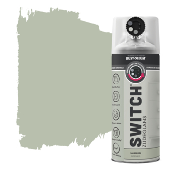 Met de Rust-Oleum Switch spuitlak zijdeglans saliegroen 400 ml werk je zoals jij dat wilt. De spuitmond heeft vijf standen waarmee je zelf bepaalt hoe de lak uit de bus komt. Kies uit hoog volume, standaard, laag volume, of een horizontale of verticale straal. Zo pas je de spuitvorm aan op wat je schildert, van grote oppervlakken tot kleine hoekjes. Door één simpele draai wissel je van stand. Dat scheelt tijd én voorkomt fouten tijdens het lakken.