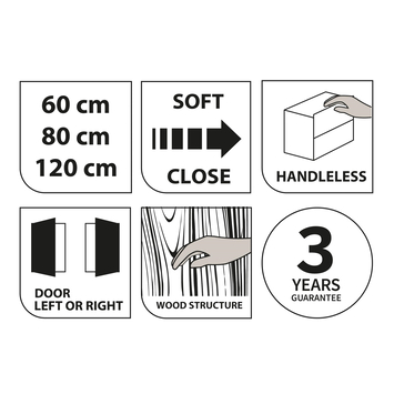Achter de deuren van deze universele Tiger S-line spiegelkast gaat ontzettend veel opbergruimte schuil. Daarnaast krijgt de spiegelkast, door de voelbare houtnerf, een mooie natuurlijke uitstraling. De deuren zijn voorzien van hoogwaardige 'soft close' scharnieren waardoor ze geruisloos sluiten en door de asymmetrische spiegeldeuren zit er geen storende scheidingslijn in het gezichtsveld. Bovendien heeft de spiegelkast 6 legplanken in dezelfde mooie houttint. Daarnaast zijn de legborden in hoogte verstelbaar. De deuren zijn zowel links als rechts monteerbaar.