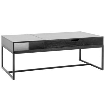 De Nienke salontafel van 120 x 44 cm combineert een strak zwart houten tafelblad met stevige metalen poten en brengt een moderne uitstraling in je woonkamer. Het tafelblad is 1,5 cm dik en bekleed met fineer, waardoor het een warme, natuurlijke look heeft. De metalen poten zijn 1,2 cm dik en zorgen voor een stabiele basis, met een hoogte tot de onderkant van 32 cm zodat je gemakkelijk je voeten onder de tafel kunt plaatsen. Deze salontafel is perfect te combineren met verschillende interieurstijlen en biedt voldoende ruimte voor decoratie, boeken of een dienblad met hapjes.