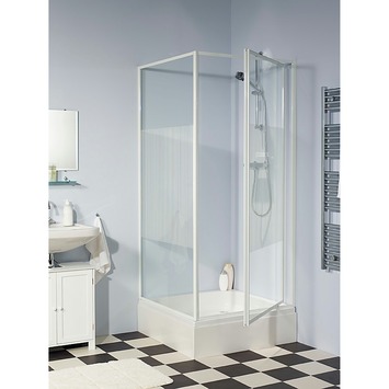 De Saniscape Euro douchecabine met draaideur en zijwand profiel wit en helder glas 185x90cm is een instapmodel douchecabine. Voor een beperkt budget is dit een ideale oplossing aangezien dit een complete, functionele douchecabine betreft. Voor plaatsing kunt u zowel de vloer als een douchebak gebruiken. Daardoor is deze cabine in vrijwel alle badkamers in te passen. Dankzij de 90cm brede opening stapt u comfortabel in en uit.