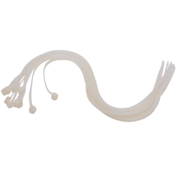 Binders (tie-wraps) ten behoeve van het eenvoudig vastzetten van PVC flexbuizen, verpakt per 10 stuks lengte 45cm. De binder is geschikt voor het omsluiten van buizen. Met behulp van de binder maakt u pvc flexbuizen stevig aan elkaar vast zonder dat er lucht of water bij kan.