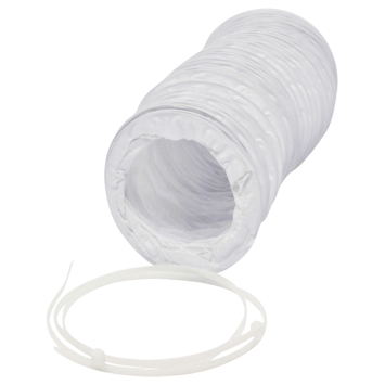 Flexibele buis wit PVC, diameter 125mm met een lengte van 1,5 meter. U gebruikt de witte pvc-buis onder meer voor de luchttoevoer en -afvoer van ventilatiesystemen en wasdrogers. U sluit de buis aan op de slangaansluiting van bijvoorbeeld uw wasdroger en legt de slang naar buiten. Op die manier zorgt de pvc-buis voor de aanvoer van frisse lucht en de afvoer van vochtige lucht. De buis is bestand tegen temperaturen van -10°C tot +80°C.