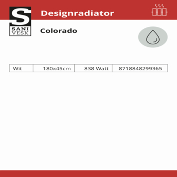 De Sanivesk Colorado designradiator van 180 x 40 cm is een slanke, verticale verwarming die veel warmte afgeeft. Met een vermogen van 948 watt warmt hij grotere ruimtes snel en gelijkmatig op, ideaal voor wanneer comfort belangrijk is. De vlakke witte voorplaat zorgt voor een luxe en rustige uitstraling die bij bijna elk interieur past. Door de zes aansluitpunten van 1/2 inch ben je flexibel in het aansluiten op je verwarmingssysteem. Met een radiator onderblok sluit je het leidingwerk eenvoudig aan op de midden-onder aansluitingen. Deze combinatie van design en functionaliteit maakt de Colorado een praktische en mooie keuze om warmte toe te voegen aan je woning.