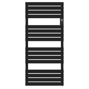 De Sanivesk London elektrische handdoekradiator van 120 x 50 cm in zwart combineert een luxe aluminium design met krachtige elektrische verwarming. Met een vermogen van 600 watt is deze radiator ideaal voor ruimtes zonder cv-aansluiting die snel en efficiënt verwarmd moeten worden. Het strakke zwarte aluminium oppervlak geeft een moderne en stijlvolle uitstraling die in elke ruimte opvalt. Met de bijgeleverde bevestiging set hang je de radiator eenvoudig en stevig aan de muur. De slimme thermostaat, uitgerust met klok-/weekprogramma, boost-modus en openraam-detectie, zorgt voor optimaal comfort en energiebesparing, geheel volgens de ERP-richtlijnen.