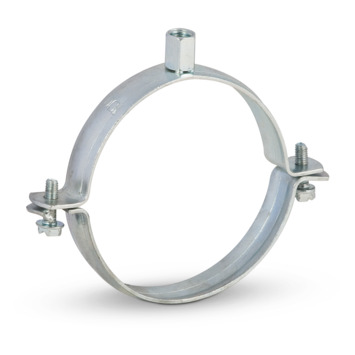 Spiraalbuis 1-Puntsbeugel Ø125mm. Deze beugel gebruikt men voor het bevestigen van een Spiraalbuis aan een wand. Zowel binnen als buiten toepasbaar. De beugel is voorzien van rubber manchet voor een sterke en stille sluiting om de buis.