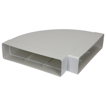 Vlakkanaal 220x55mm bochtstuk horizontaal. 220x55mm correspondeert met buisdiameter 125mm. Een vlakkanaal gebruikt u om bijvoorbeeld als afvoerkanaal vanaf een afzuigkap naar buiten, maar ook ventilatoren kunnen door middel van een vlakkanaal worden gekoppeld. De rechthoekige vorm maakt het gemakkelijk om deze kanalen weg te werken. De luchtbuis van pvc is bestand tegen een temperatuur van maximaal 80ºC. Voor het aanleggen van dit vlakkanaal vindt u in het assortiment verschillende hulpstukken, zoals verbindingsstukken en afdekplaten.