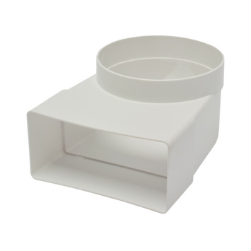 Vlakkanaal 110x55mm verloopstuk met bocht naar Ø100mm. 110x55mm correspondeert met buisdiameter 100mm. Een vlakkanaal gebruikt u om bijvoorbeeld als afvoerkanaal vanaf een afzuigkap naar buiten, maar ook ventilatoren kunnen door middel van een vlakkanaal worden gekoppeld. De rechthoekige vorm maakt het gemakkelijk om deze kanalen weg te werken. De luchtbuis van pvc is bestand tegen een temperatuur van maximaal 80ºC. Voor het aanleggen van dit vlakkanaal vindt u in het assortiment verschillende hulpstukken, zoals verbindingsstukken en afdekplaten.