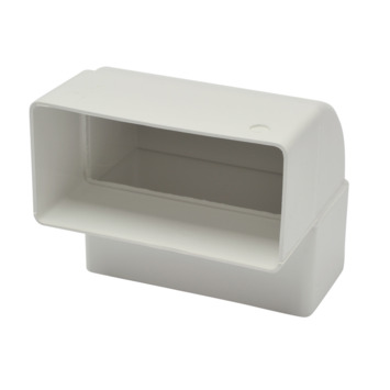 Vlakkanaal 110x55mm bochtstuk verticaal. 110x55mm correspondeert met buisdiameter 100mm. Een vlakkanaal gebruikt u om bijvoorbeeld als afvoerkanaal vanaf een afzuigkap naar buiten, maar ook ventilatoren kunnen door middel van een vlakkanaal worden gekoppeld. De rechthoekige vorm maakt het gemakkelijk om deze kanalen weg te werken. De luchtbuis van pvc is bestand tegen een temperatuur van maximaal 80ºC. Voor het aanleggen van dit vlakkanaal vindt u in het assortiment verschillende hulpstukken, zoals verbindingsstukken en afdekplaten.