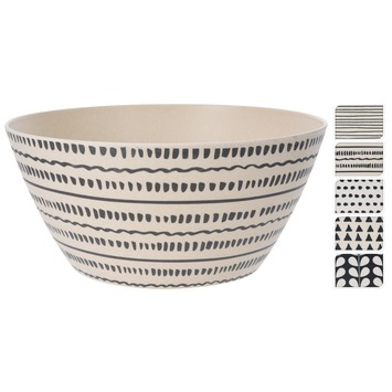 De Schaal bamboe dessin Ø24 cm in 5 soorten is een stijlvolle ecologische schaal. Gemaakt van bamboe en voorzien van 5 verschillende dessins. Geschikt voor in de vaatwasser.