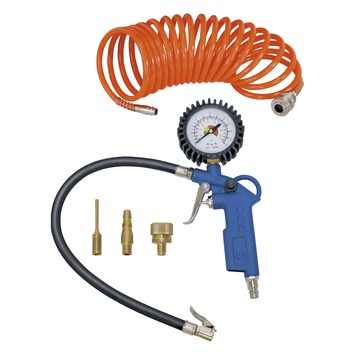 Het accessoire set bestaat uit 5 meest gebruikte luchtgereedschappen. Als eerste heeft de kit een bandenpomp met een manometer met dubbele schaal (Bar/PSI) en deflatieknop. De manometer heeft een rubberen beschermrand, ter voorkoming van schade aan het apparaat. Ook heeft de set een 5 meter lange terugslag luchtslang die geschikt is voor de accessoires om zo een makkelijke verbinding te maken. En er zitten ook nog 3 verschillende mondstukken in de kit. Deze zijn geschikt voor het oppompen van verschillende producten. Kortom, de Scheppach Luchtgereedschap Accessoires kit 5-delig is een ideale set voor de doe-het-zelf hobbyist.
