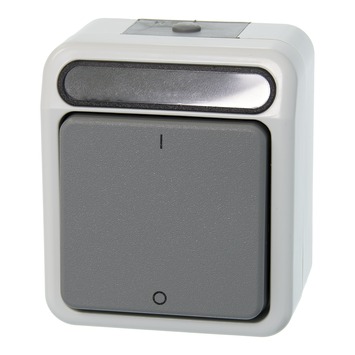 De Schneider Electric opbouw schakelaar 2-polig grijs is spatwaterdicht. Dat en het feit dat de kunststoffen behuizing breukvast is, maakt deze wisselschakelaar geschikt voor gebruik buitenshuis. De grijze 2-polige schakelaar uit de Aquastar-lijn gebruikt u voor het bedienen van verlichting op plaatsen waar extra veiligheid gewenst of noodzakelijk is.