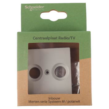 De centraalplaat radio/tv wordt gebruikt om het universeel radio/tv basiselement af te dekken. De afdekkingsplaat met afdekraam maakt de combinatie compleet. De centraalplaat past binnen de Schneider Merten System-M serie en heeft de kleur wit.