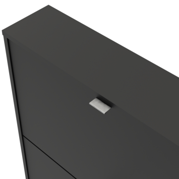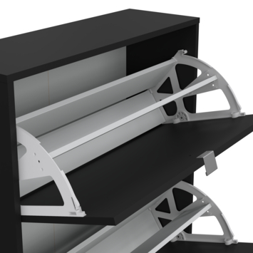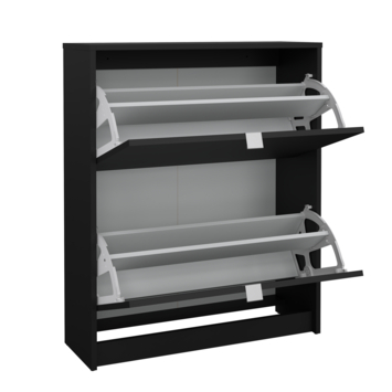 Maak een einde aan je rondslingerende schoenen met deze schoenenkast met handig design. Met twee grote vakken is er genoeg ruimte voor al je schoenen. De kast is uitgevoerd in het zwart, maar is ook verkrijgbaar in het wit.