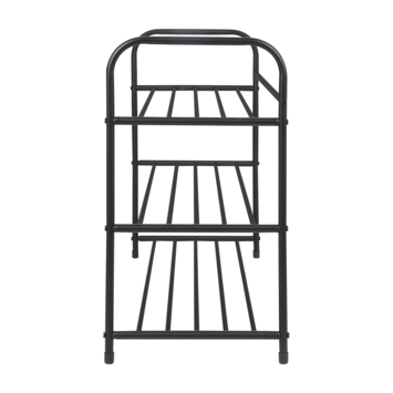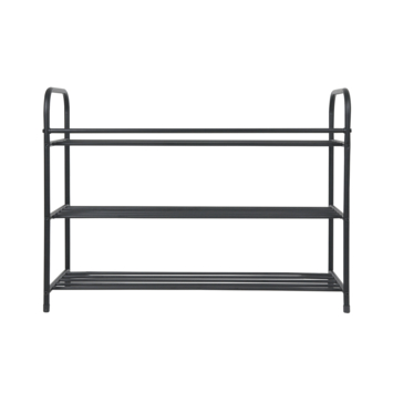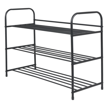 Het Henkjan schoenenrek is een simpel maar functioneel meubel bestaande uit drie lagen waar je al je schoenen netjes op kan zetten. Het schoenenrek heeft een neutrale zwarte kleur.