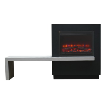 Deze geborsteld grenen schouwombouw uitgevoerd in RAL9017 (grijs) en RAL9001 (wit) heeft een plankenstructuur en naast de haard zit een bankje voor een extra zitplek. Onder het bankje kunt u houtblokken plaatsen voor een mooie sfeer. De Memphis schouwombouw maak je compleet met de elektrische inzethaard Zürich of Frankfurt. U kunt ook kiezen voor de bio ethanol inzethaard Wenen.