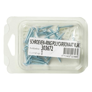Deze schroefset is geschikt voor de montage van polycarbonaatplaten. Platen monteren met deze schroeven is vele malen makkelijker dan met reguliere schroeven. Deze schroeven zijn namelijk speciaal ontworpen voor gebruik in combinatie met polycarbonaat platen. Zo weet je zeker dat je met een kwalitatief product aan de slag gaat en je aan een stevige constructie werkt. Kortom, de Schroefset Lexan 30 stuks is de ideale tool bij montage van polycarbonaat platen.