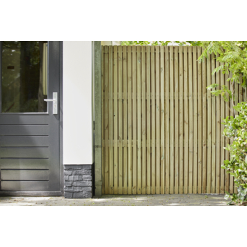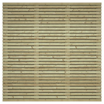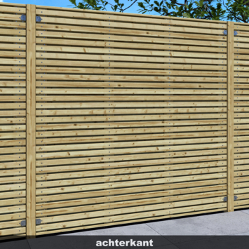 De lamellenschutting is een houten schutting bestaande uit latten in plaats van planken. Deze schutting is een moderne uitvoering van de klassieke schutting. Deze schutting is gemaakt van grenenhout, een zeer geschikte houtsoort voor gebruik in de tuin. Door het impregneren van het hout is deze schutting beter beschermd tegen weersomstandigheden. Door de overlappende latjes is de doorkijk bij de schutting minimaal. Het lattenscherm is vanaf één zijde geschroefd waardoor het scherm een voor- en achterkant heeft.