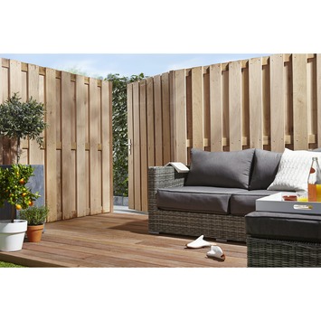 De 15-planks Eiken schutting is sterk en duurzaam en is een goed alternatief voor tropisch hardhout en is goed te behandelen met een hardhout beits. de schutting zorgt voor privacy en veiligheid in uw tuin en de natuurlijke eigenschap van hout zorgt voor het dempen van het geluid