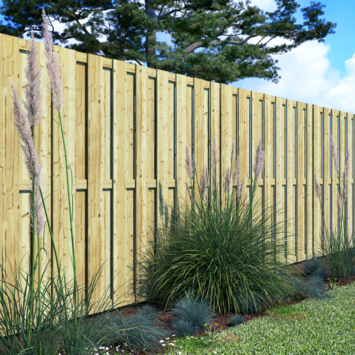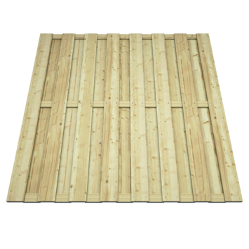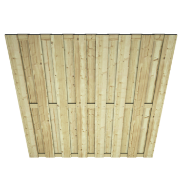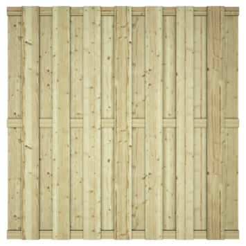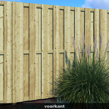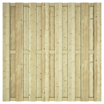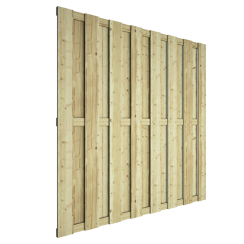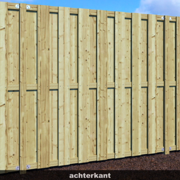 Schutting Jumbo is gemaakt van 15 geschaafde grenen planken. De planken zijn bevestigd met behulp van geschoten schroeven. Het grenenhout waar de schutting uit bestaat is geïmpregneerd en daardor beter bestand tegen weersomstandigheden. Schutting Jumbo is 1 meter 80 hoog en 1 meter 80 breed. De afzonderlijke planken zijn 13,5 centimeter breed en 1,3 centimeter dik. De schutting Jumbo heeft een gemiddelde privacy, wat te maken heeft met het aantal planken, de plankmaat en de mate van overlap. Deze schutting heeft een levensduur van ongeveer 10 jaar en kan na 5 jaar behandeld worden met een tuinbeits als bescherming voor het hout. De natuurlijke eigenschap van hout zorgt verder voor demping van het geluid.