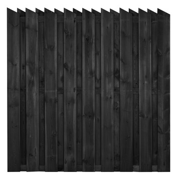 De schutting Royal is een houten schutting welke met een punt op elke plank is afgewerkt. Het tuinscherm is gemaakt van grenenhout. Dit soort hout is zeer geschikt voor het gebruik in de tuin. Daarnaast is het door het impregneren van het hout ook nog eens duurzaam. De schutting is al gedompeld in antraciete kleur zodat deze zelf niet meer geverfd hoeft te worden. De schutting is gemaakt van 17 geschaafde planken van 15mm dik en 14cm breed. De afmetingen van het tuinscherm zijn 180x180cm en de planken zijn bevestigd met RVS schroeven. Deze gaan niet roesten en hierdoor kan de schutting jarenlang meegaan. Dus met de schutting Royal recht 180x180cm heb je een duurzame houten schutting waar je de komende jaren veel plezier van zal hebben.