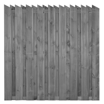 De schutting Royal is een houten schutting welke met een punt op elke plank is afgewerkt. Het tuinscherm is gemaakt van grenenhout. Dit soort hout is zeer geschikt voor het gebruik in de tuin. Daarnaast is het door het impregneren van het hout ook nog eens duurzaam. De schutting is al gedompeld in grijze kleur zodat deze zelf niet meer geverfd hoeft te worden. De schutting is gemaakt van 17 geschaafde planken van 15mm dik en 14cm breed. De afmetingen van het tuinscherm zijn 180x180cm en de planken zijn bevestigd met RVS schroeven. Deze gaan niet roesten en hierdoor kan de schutting jarenlang meegaan. Dus met de schutting Royal recht 180x180cm heb je een duurzame houten schutting waar je de komende jaren veel plezier van zal hebben.