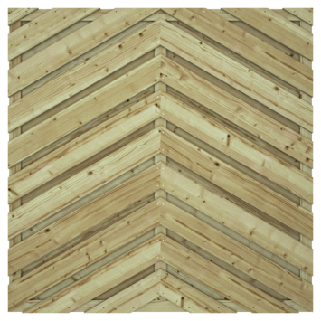 Het tuinscherm Szeged recht grenen geschaafd geïmpregneerd groen is 180 cm hoog, 180 cm breed en 4,5 cm diep. Het scherm bestaat uit een houten frame waarop planken in visgraatmotief met RVS schroeven zijn bevestigd. Het scherm is tweezijdig, heeft enige doorkijk en kan met (6x) L-beslag met schroef en RVS schroeven aan 2 steunpalen bevestigd worden. Het plankenscherm is gemaakt de houtsoort grenen.