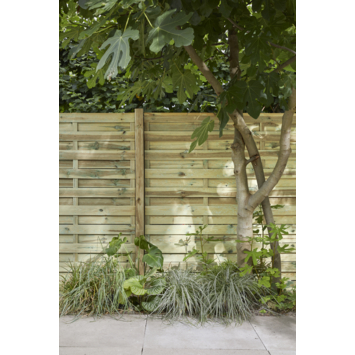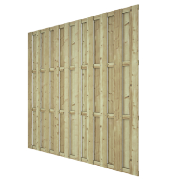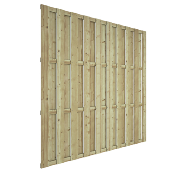 Tuinscherm Wales is gemaakt van geïmpregneerd ruw grenenhout. Aan de bovenzijde heeft de schutting een ronding, of een toog. Het tuinscherm bestaat uit 19 planken van 9,8 centimeter breed en 0,7 centimeter dik. De planken zijn bevestigd door middel van nietjes. De schutting is 1 meter 80 hoog en 1 meter 80 breed. Doordat de schutting geïmpregneerd is, is het hout beter beschermd tegen weersomstandigheden. Onderhoud hoeft voor deze schutting pas na 5 jaar te worden gepleegd. Behandel de schutting dan met een tuinbeits.