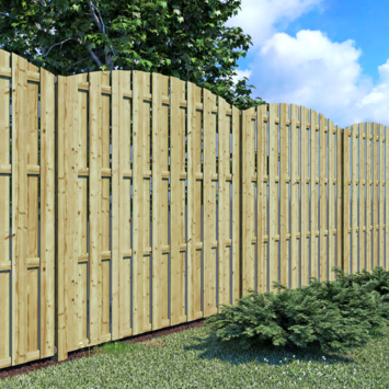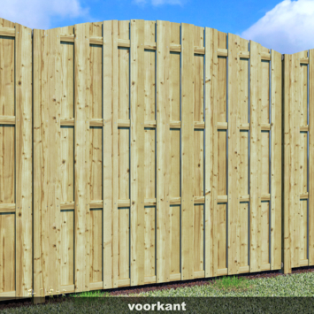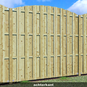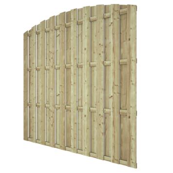 Schutting Wales is gemaakt van geïmpregneerd ruw grenenhout. Aan de bovenzijde heeft de schutting een ronding, oftewel een toog. Het tuinscherm bestaat uit 19 planken van 9,8 centimeter breed en 0,7 centimeter dik. De planken zijn bevestigd door middel van nietjes. De schutting is 1 meter 80 hoog en 1 meter 80 breed. In vergelijking met andere schuttingen die bij GAMMA verkrijgbaar zijn heeft deze schutting minimale privacy. Dit heeft vooral te maken met de plankmaat, het aantal planken en de afstand tussen de planken. Doordat deze geïmpregneerd is, is het hout beter beschermd tegen weersomstandigheden. Onderhoud hoeft voor deze schutting pas na 5 jaar te worden gepleegd. Behandel de schutting dan met een tuinbeits.