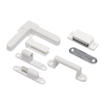 De Screenlite onderdelen set t.b.v. hordeur wit bevat een complete set om uw hordeur af te hangen, en af te sluiten. De scharnieren en magneetsluiting in deze set zijn wit en laten u eenvoudig de hordeur openen en sluiten. Hierdoor is dit een handige oplossing wanneer u bijvoorbeeld de ramen wilt wassen.