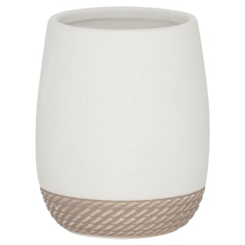 De Sealskin Beker Braid Wit is een stijlvolle toevoeging aan jouw badkamer of toilet. Deze beker, vervaardigd uit keramiek, biedt niet alleen een luxe uitstraling maar is ook praktisch in gebruik. De bijzondere touwstructuur aan de onderzijde geeft een speelse touch en zorgt ervoor dat je de beker stevig kunt vasthouden. Gebruik hem voor je tandenborstels, scheermesjes of om oogpotloden in op te bergen. Deze veelzijdige beker maakt het gemakkelijk om je badkamer georganiseerd en stijlvol te houden.