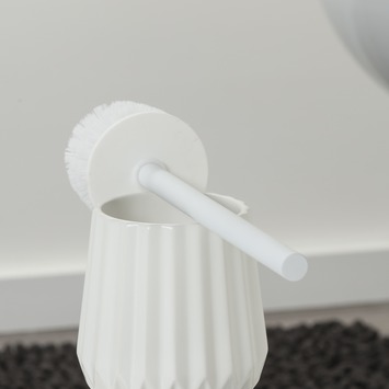 De Sealskin Toiletborstel met houder Arte Wit is de perfecte oplossing voor een stijlvolle en praktische badkamer. Dankzij de matte witte afwerking met rubber finish, past deze toiletborstelhouder naadloos in een moderne inrichting. De geometrische vorm geeft niet alleen een trendy uitstraling, maar zorgt er ook voor dat de houder stevig op de grond staat. Met voldoende ruimte voor één toiletborstel, houdt deze houder alles netjes en opgeruimd. Dit maakt de Arte Wit een functionele aanvulling op je sanitaire voorzieningen.