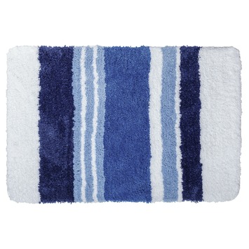 De Sealskin Badmat Soffice Blauw 60x90 cm is gemaakt van sterke microfibers en wordt gekenmerkt door een klassiek lijnenpatroon in diverse warme kleuren.