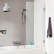 De volledig profielloze serie 'I AM' is met recht een transparante alleskunner. Naast diverse standaard maatvoeringen zijn talloze maatwerkoplossingen mogelijk. Zo kunnen we de breedte en hoogte aanpassen, maar bijvoorbeeld ook eventuele schuintes in de muren of het plafond opvangen. Deze Sealskin Badwand I AM 75x160 cm Chroom van 750mm breed en 1600mm hoog is een minimalistische oplossing om in bad te douchen. Het veiligheidsglas van maar liefst 8mm is altijd voorzien van een antikalk laag waardoor kalk en viezigheid zich minder snel zal hechten. De scharnieren van I AM zijn zelfsluitend. Wat deze badwand écht bijzonder maakt, is de luxueuze zilver hoogglans afwerking. I AM badwanden zijn ook beschikbaar in de standaardmaat 850mm en natuurlijk als maatwerk oplossing. De scharnieren zijn tevens beschikbaar in eenstoere RVS look en in een unieke matzwarte afwerking.