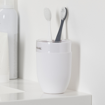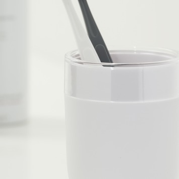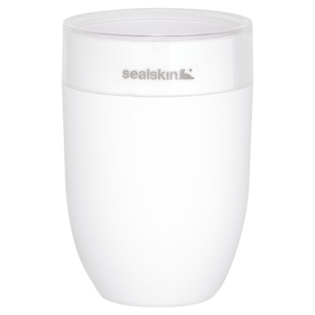 De Sealskin Beker Bloom Wit is gemaakt uit sterk kunststof. De bovenkant van de beker is uitgevoerd in glanzend wit en het onderste gedeelte heeft dezelfde basiskleur in een matglas uitvoering. De beker heeft een inhoud van 350 ml waardoor deze beker ook als tandenborstelhouder kan dienen. Natuurlijk kan je er ook je scheermesjes of oogpotloden in kwijt. De moderne ronde look zorgt er voor dat deze beker past in elke badkamer. Deze Bloom serie van Sealskin bestaat nog uit een toiletborstel met houder en een zeepdispenser. Deze Bloom sanitaire accessoire reeks is ook verkrijgbaar in het donkergrijs.