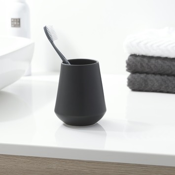 De Sealskin Beker Conical in zwart porselein voegt direct een stijlvolle touch toe aan je badkamer of toilet. Dankzij het moderne conische design staat deze beker niet alleen prachtig op je wastafel, maar biedt hij ook praktische functionaliteit. De beker is ideaal voor het bewaren van tandenborstels of als houder voor je scheermesje. Het porselein is eenvoudig te reinigen met een vochtig doekje, waardoor hij er altijd netjes uitziet. Met deze beker maak je je badkamer gemakkelijk een stuk netter en georganiseerder.