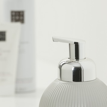 De Sealskin zeepdispenser Convex lichtgrijs is een stijlvol en praktisch accessoire voor je badkamer. Gemaakt van keramiek, biedt dit zeeppompje niet alleen een luxe uitstraling, maar is het ook eenvoudig in gebruik. Dankzij de handmatige bediening vul je het reservoir moeiteloos bij en geniet je van een mooie, gelijkmatige dosering zeep. De lichte pasteltint en het unieke reliëf met verticale gebogen lijnen geven een frisse uitstraling aan je interieur. Deze zeepdispenser is een must-have voor elke stijlbewuste doe-het-zelver die graag zijn of haar badkamer een upgrade wil geven.