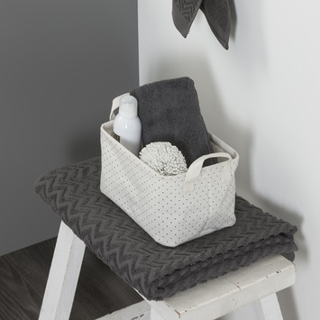 Het Sealskin Mandje Dots Ecru Vierkant is de perfecte oplossing voor een georganiseerde badkamer. Met een inhoud van 4,5 liter biedt dit praktische mandje voldoende ruimte voor al je kleine badkameraccessoires. Gemaakt van stevig textiel en voorzien van een speelse ecru kleur met een leuke print, geeft het een frisse uitstraling aan je ruimte. Dankzij de twee handige grepen neem je het mandje eenvoudig mee waar je het nodig hebt, of het nu gaat om handdoeken, een haardroger of toiletpapier. Dit mandje is niet alleen functioneel, maar voegt ook een stijlvol element toe aan je interieur. Dit Sealskin mandje maakt het opruimen een stuk eenvoudiger en zorgt ervoor dat alles een eigen plekje heeft.
