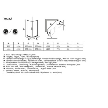 - Verstelbaarheid buitenzijde profiel 970-990 x 970-990 mm in een nis