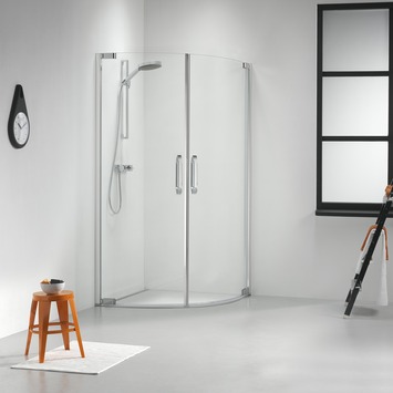 De Sealskin Douchecabine met Dubbele Swingdeur Impact Kwartrond 100x195 cm Chroom heeft maar liefst 8mm dik veiligheidsglas. Verder getuigen RVS en messing materialen van een hoge kwaliteit van deze swingdeuren. De onzichtbaar weggewerkte schroeven ogen niet alleen fraai, maar maken ook het schoonmaken een stuk eenvoudiger.