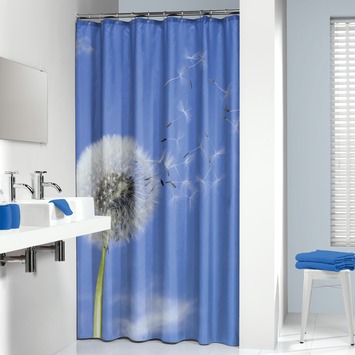 Het Sealskin Douchegordijn Blow Ball Blauw 180x200 cm is een textiel douchegordijn gemaakt van 100% polyester en is voorzien van een waterafstotende coating. Dit douchegordijn met fotoprint heeft heldere kleuren en geeft een ontspannen gevoel door de afbeelding van de mooi gedetailleerde paardenbloem. De afmeting van 180 bij 200 centimeter maakt je douchegordijn geschikt voor toepassing in een nis of hoek van de badkamer. Dit product is tevens machine wasbaar op 30°C.