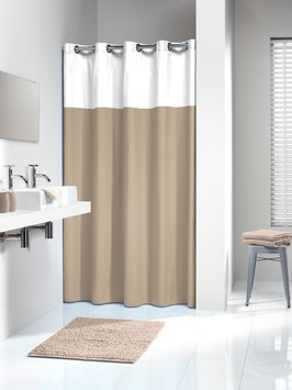 Tweekleurig elegant douchegordijn gemaakt van een mix van katoen en polyester. Deze combinatie van materialen geeft het Sealskin Douchegordijn Double 180x200 cm extra body en een stevige en luxe uitstraling. In de bovenzijde zijn grote ringen van roestvrij staal verwerkt waardoor het gordijn makkelijk en degelijk opgehangen kan worden.