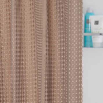 Het Sealskin Douchegordijn Relative Polyester 180x200 cm Zand is een extra luxe douchegordijn van Sealskin met een ingeweven patroon. De basis van het douchegordijn is wit, de geometrische weving is uitgevoerd in het bruin. Het douchegordijn is voorzien van een verzwaarde onderzoom.