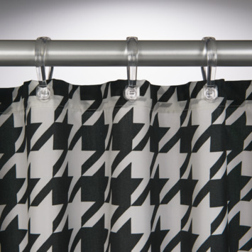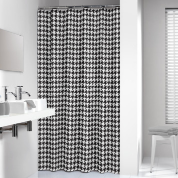 Het oog wil ook wat. Het Seamless douchegordijn van Sealskin houdt niet alleen de rest van de badkamer droog tijdens het douchen maar heeft ook een mooi dessin. Het is een klassiek ogend douchegordijn in een zwarte blokprint op een witte achtergrond met een Italiaanse uitstraling. Inspiratie voor het ontwerp van dit douchegordijn werd opgedaan op de Salone del Mobile in Milaan.