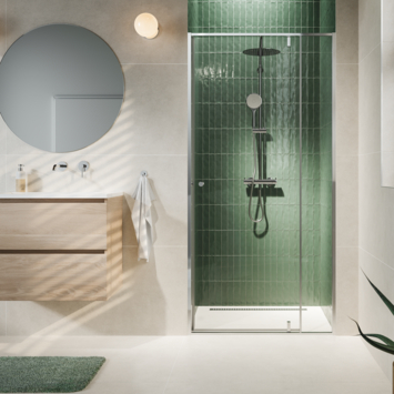 De deur scharniert niet direct aan de muur, waardoor je nooit tegen een radiator of accessoire stoot. Met een hoogte van 2 meter blijft de warmte in de douche behouden, waardoor douchen comfortabeler wordt. De uit het zicht geplaatste schroeven en de moderne zilver hoogglans afwerking maken onderhoud eenvoudig en geven een overzichtelijke uitstraling. De deur wordt maximaal voorgemonteerd geleverd, waardoor de installatie snel en overzichtelijk verloopt.