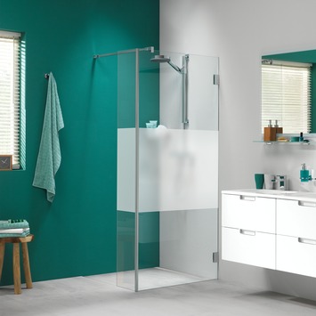 De volledig profielloze serie 'I AM' is met recht een transparante alleskunner. Naast diverse standaard maatvoeringen zijn talloze maatwerkoplossingen mogelijk. Zo kunnen we de breedte en hoogte aanpassen, maar bijvoorbeeld ook eventuele schuintes in de muren of het plafond opvangen. Deze Sealskin Inloopdouche I AM A1 138x30x200 cm Chroom met Gesatineerde Band bestaat uit een wand met een vast deel op 90 graden. Het is een bijzonder transparante inloopdouche die nét even wat meer water in de doucheruimte houdt. Daarnaast kun je de wand eenvoudig in een douchebak plaatsen of zelfs direct op de vloer monteren. Wat deze douche écht bijzonder maakt, is de luxueuze zilver hoogglans afwerking. Zo breng je een unieke sfeer in je badkamer. Het veiligheidsglas van maar liefst 8mm is altijd voorzien van een antikalk laag waardoor kalk en viezigheid zich minder snel hecht. I AM Inloopdouches van het type A1 zijn beschikbaar in 880, 980 en 1180 mm. Deze inloopdouche is tevens beschikbaar in een stoere RVS uitstraling en in een unieke matzwarte afwerking.