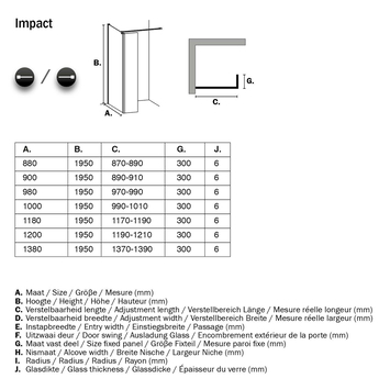 De Sealskin Inloopdouche Impact A1 118x30x195 cm Chroom heeft 8mm dik veiligheidsglas en oogt stijlvol. De ruimtelijke opzet wordt versterkt door de inkortbare steun die op 90 graden geplaatst wordt voor maximale stabiliteit. De douchewand is in een douchebak te plaatsen, maar kan ook direct op de vloer gemonteerd worden. Het veiligheidsglas zorgt voor een stevige wand en dankzij de antikalk laag is de douchewand eenvoudig schoon te maken. Deze inloopdouche kun je ook in de breedtematen 98, 118 en 138 cm in de GAMMA webshop kopen.