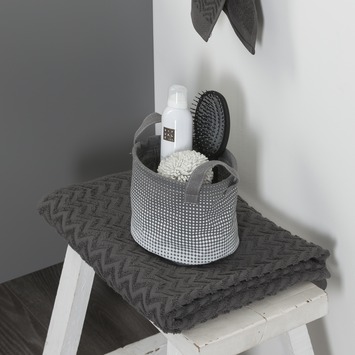 Het Sealskin Mandje Speckles Grijs Rond is gemaakt uit textiel. De kleur is grijs met een leuke print. Het mandje heeft een inhoud van 3 liter en heeft twee handige grepen. In dit mandje kan je allerlei kleine badkamerspullen opbergen, zoals bv. een handdoek, haardroger, toiletpapier... Het mandje Speckles zorgt voor een opgeruimde badkamer of toilet en is ideaal om te combineren met een wasmand uit het Sealskin assortiment.